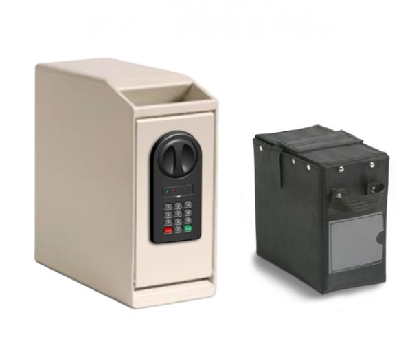 Deponeringsboxen är tillverkad i 3 mm stålplåt. Extra förstärkt deponeringsinkast med fiskningsskydd. Låset har ett betryggande ingrepp genom den kraftigt dimensionerade låskolven.